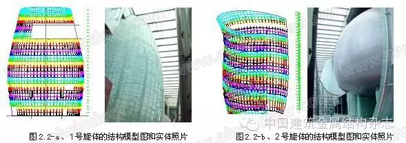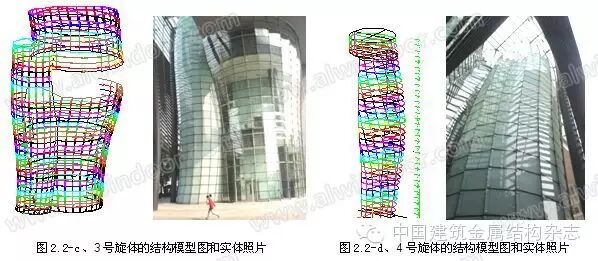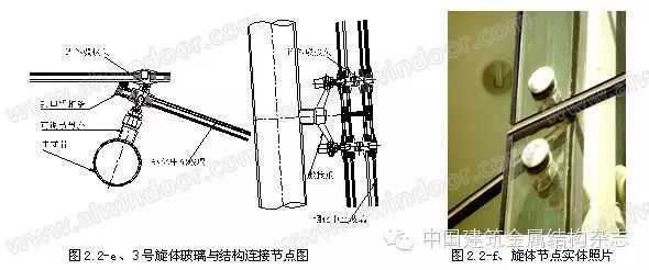 4號旋體的截面隨圓形,豎向支承結(jié)構(gòu)和豎向玻璃縫均為螺旋式,旋體總高度為32.8m,玻璃為上下兩點支承,玻璃之間為開縫式,上下玻璃板塊對接,左右玻璃板塊錯位搭接的連接方式,玻璃安裝在旋體空間鋼結(jié)構(gòu)的外側(cè)。(如圖2.2-d)空間玻璃旋體鋼結(jié)構(gòu)的設(shè)計、施工難點在于結(jié)構(gòu)空間組合的任意性.共計320根體形各異的鋼管需要進行空間三維加工,其中主管為φ159X6mm,次管為120X60X5mm矩形管,結(jié)構(gòu)與玻璃板面是通過不銹鋼爪件連接,安裝精度要求極高。在6200個玻璃安裝點上,每個點的尺寸誤差都必須控制在±2mm之內(nèi)。在3號旋體玻璃與結(jié)構(gòu)連接節(jié)點設(shè)計過程中,經(jīng)過設(shè)計人員對多個方案的反復論證,并經(jīng)多次實驗解決了玻璃板塊之間采用上下玻璃板塊對接,左右玻璃板塊錯位搭接的連接方式,在板塊之間打膠處理使之形成閉縫式連接的特殊雙層玻璃點駁接節(jié)點也叫雙頭連接駁接頭。解決了這一難題,該節(jié)點還申請了******實用新型專利,為這類連接形式找出了路子。(如圖2.2-e、f)