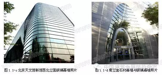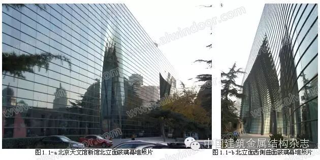 在現(xiàn)代建筑設(shè)計中,建筑師追求建筑外觀的新、奇、特藝術(shù)效果,出現(xiàn)了不少三維自由曲面造型的建筑立面。其基本表現(xiàn)手法是利用異形玻璃幕墻,通過對面板曲面的變化形式來表現(xiàn)的,這給了幕墻公司的技術(shù)人員和科研研發(fā),提出了不小的挑戰(zhàn)和巨大的契機??梢哉f,異形幕墻的出現(xiàn)和發(fā)展給了幕墻設(shè)計師們發(fā)揮其聰明才智的空間,促使建筑幕墻的設(shè)計與施工技術(shù)向前發(fā)展。本文想通過對經(jīng)過時間考驗的實際工程項目使用過的成熟節(jié)點的介紹和分析,進一步提高我們對新的異形幕墻節(jié)點的設(shè)計和理解能力。北京天文館異形玻璃幕墻和玻璃旋體,是典型的雙曲面玻璃幕墻。從工程竣工到現(xiàn)在已有十多年的時間了。位于南、北立面的夾膠中空玻璃雙曲面幕墻和馬鞍形玻璃通道的異形夾膠玻璃面板,已經(jīng)經(jīng)受到了時間的考驗。在該項目的異形幕墻中從玻璃幕墻到玻璃旋體造型。以及玻璃采光頂、屋頂玻璃體造型等相關(guān)于異形幕墻的特殊構(gòu)造節(jié)點有二十種之多。由于節(jié)點設(shè)計的比較合理,針對性和可實施性強,對異形玻璃幕墻的結(jié)構(gòu)安裝和面板安裝起到了決定性的作用。使得雙曲面的玻璃造型流暢順滑。本文對在北京天文館項目中使用的幾種特殊節(jié)點進行一下分析介紹。這些節(jié)點在近十多年中除本項目使用外,部分已經(jīng)大量應用在其它的異形幕墻的項目中,成為通用的標準節(jié)點,取得了良好的經(jīng)濟效益和社會效果。有些節(jié)點已經(jīng)審請了專利,成為被******認可的專利技術(shù)并取得了相應的專利證書,為幕墻行業(yè)技術(shù)的發(fā)展做出了貢獻。下面,結(jié)合實際工程案例作一些粗淺的解析。1.1、異形幕墻項目北京天文館新館簡介北京天文館新館的建筑位置位于北京市西直門外大街138號,總建筑面積22000平方米.是一個大型綜合性天文館。工程建筑設(shè)計由美國王弄極建筑師事物所和中國航天建筑設(shè)計研究院聯(lián)合承擔完成。玻璃工程分成三個主要部分:北立面幕墻以及采光頂、馬鞍形玻璃通道、四個空間鋼結(jié)構(gòu)玻璃旋體。無論從設(shè)計和施工的技術(shù)難度都超乎想象。(如圖1.1-a、b、c、d)